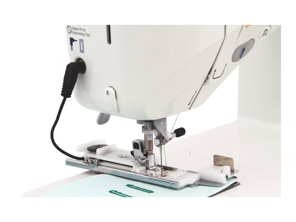 Pokročilé funkce: | odstřih niti, připojení ke kolenní páce, senzorické šití knoflíkové dírky, blokový podavač |